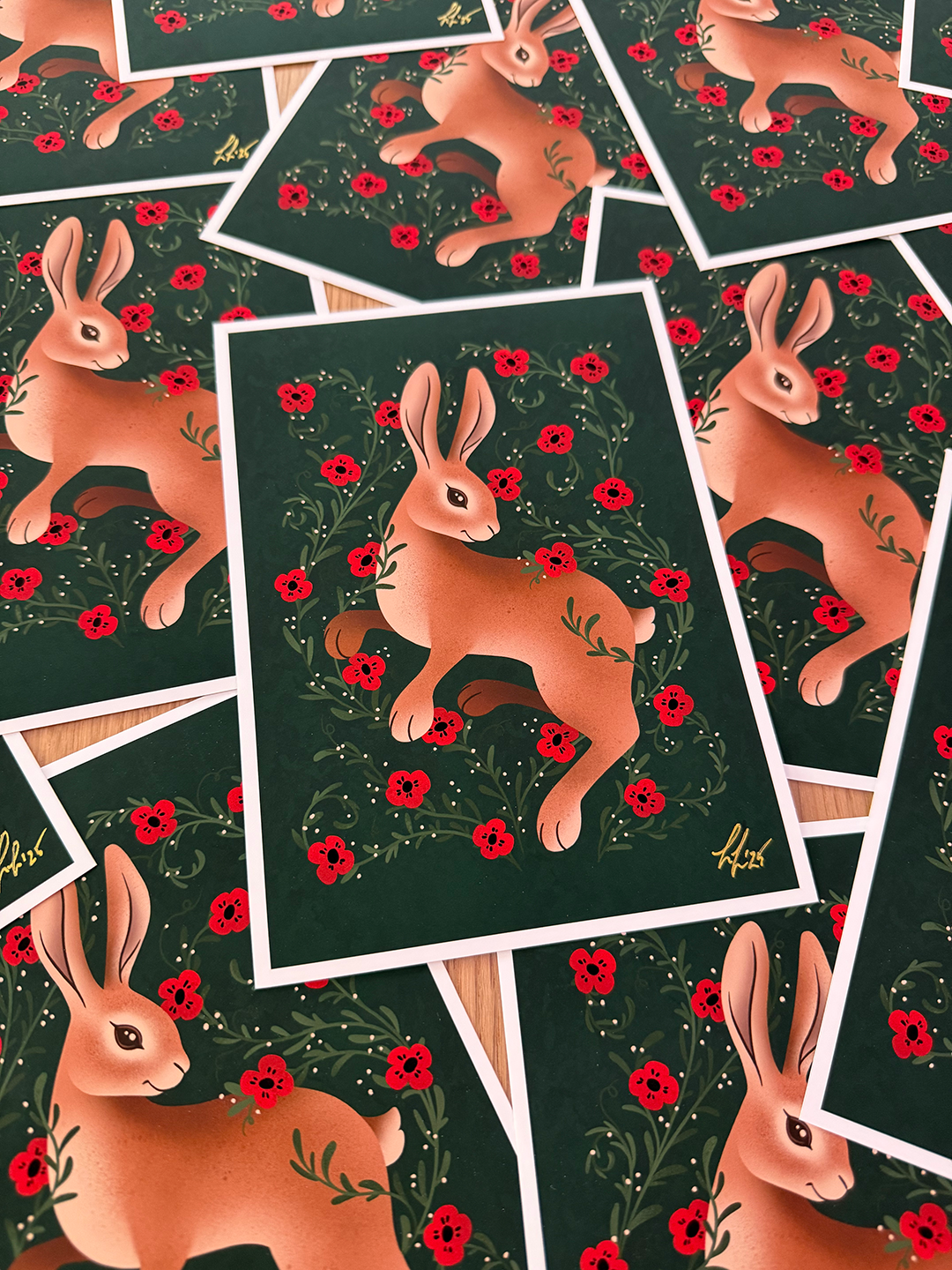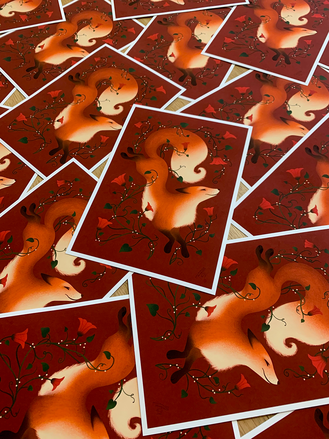 Handmade illustrated holiday cards sent to friends and family.